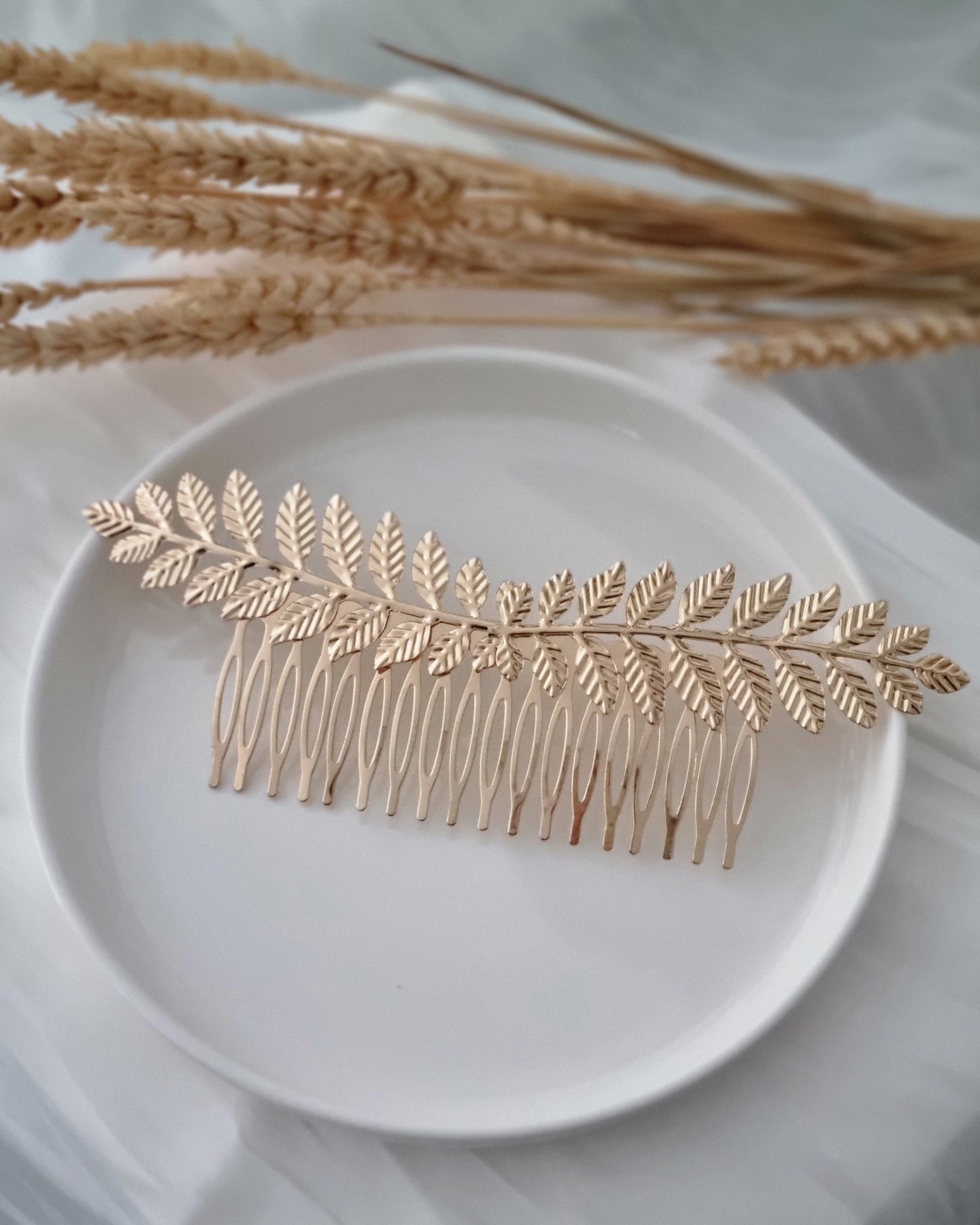Découvrez le peigne ISALINE, qui associe élégance et nature grâce à sa feuille délicate. Sublimez votre coiffure avec cet accessoire raffiné et laissez-vous emporter par son charme intemporel. Donnez une touche d'originalité à votre look avec le peigne ISALINE !